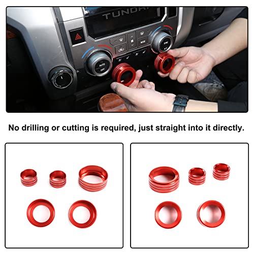 🚙Applicable Models: The Air Conditioner Stereo Volume Switch Knob Ring Covers are compatible with Toyota Tundra 2007-2021. The size of the original car is customized. Please confirm your car model before purchasing. (5 Pieces/Pack, Red)(Not fit Tundra SR, Tundra SR5)
