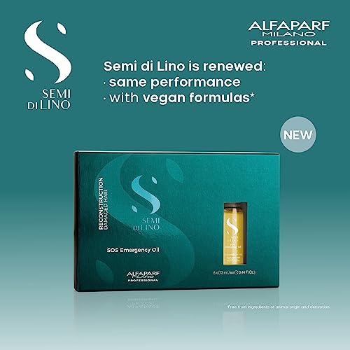 Alfaparf Milano Semi di Lino Reconstruction Reparative SOS Emergency Oil for Damaged Hair – Includes 6 Vials – Vegan Formula – Repairs, Provides Shine and Softness – 2.64 fl. oz.