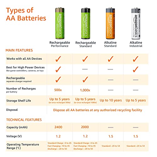 SINGLE USE: These batteries are NOT rechargeable; for rechargeable options, check out Amazon Basics rechargeable batteries