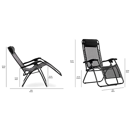 Specification: Amazon Basics Outdoor Textilene Adjustable Zero Gravity Folding Reclining Lounge Chair with Pillow, 26″, Black