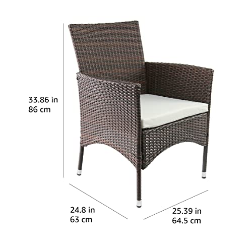 Specification: Amazon Brand – Ravenna Home Set of 2 Contemporary Outdoor Patio Dining Chairs with Cushion, Weather-Resistant PE Rattan Wicker, Brown, 24.8″D x 25″W x 33.9″H
