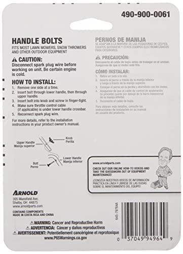 Fits most lawn mowers, snow throwers & other outdoor power equipment. Contains two short bolts, Two large bolts & two Handles. 2Piece fits most lawn mowers, snow throwers & other outdoor equipment contains two short bolts, Two large bolts & two Handles Includes 2-5/16″ X 1″ Bolt & 2-5/16″ X 2″ Bolt.
