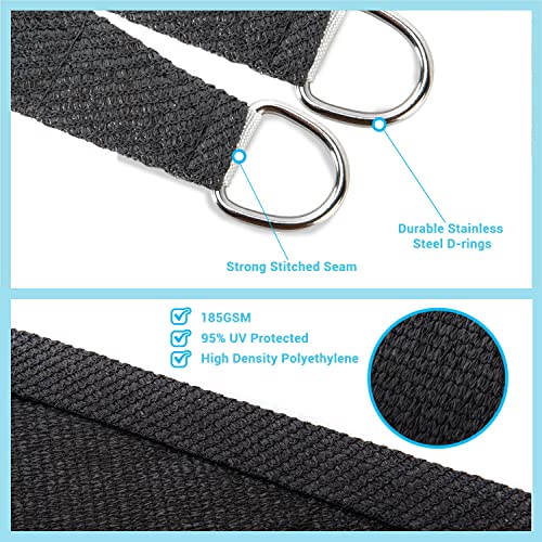 High Quality – The patio shade has 100% High Density 185GSM Polyethylene fabric, with strong stitched seams and durable stainless steel D-rings. The fabric is breathable and 95% UV block, allowing air and light to pass through for a more comfortable space. This sail shade also comes along with sturdy polyethylene ropes