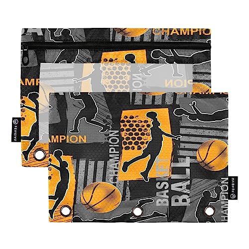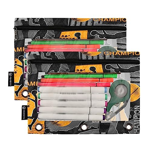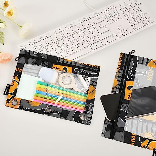 Basketball Player Binder Pencil Pouch for 3 Ring Pencil Pouch with Zipper Clear Window Pencil Case Pencil Pouches Bags for Office Daily Supplies, 2 Pack