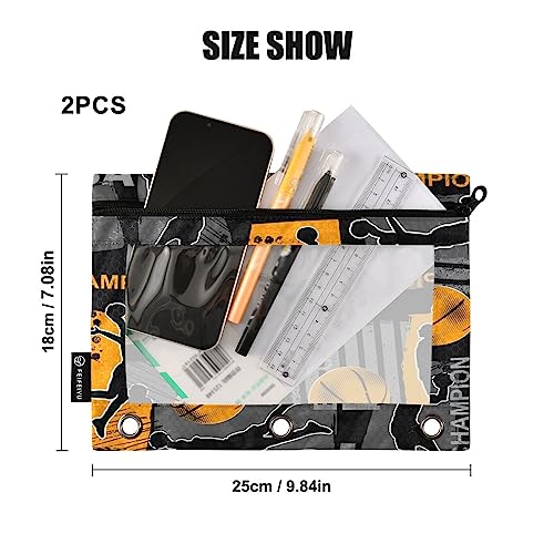 Specification: Basketball Player Binder Pencil Pouch for 3 Ring Pencil Pouch with Zipper Clear Window Pencil Case Pencil Pouches Bags for Office Daily Supplies, 2 Pack