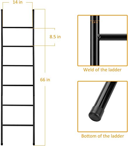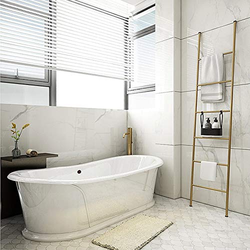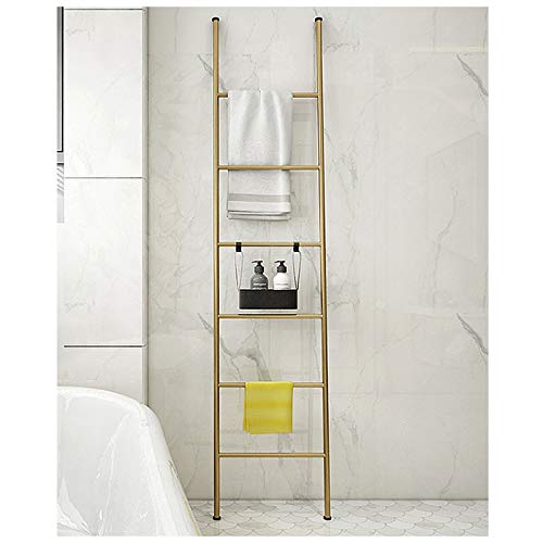 Specification: Bath Towel Ladder, Metal Wall-Leaning Blanket Rack Ladder with 6 Bars, Free Standing Leaning Decorative Storage Ladder, Home Accessories Organizer Stand Gold
