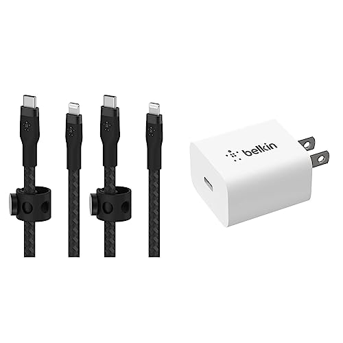 Belkin BoostCharge Pro Flex Braided USB Type C to Lightning Cable 2Pack (2M/6.6ft) & 20 Watt USB C Wall Charger – USB Type C Charger Fast Charging
