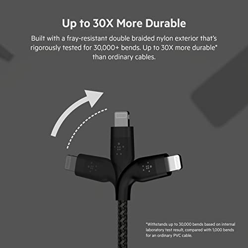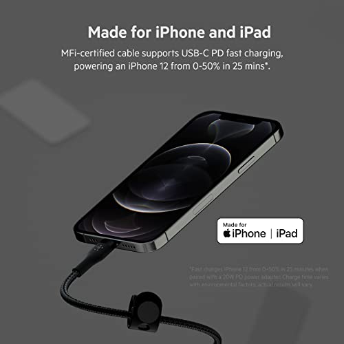 Belkin BoostCharge Pro Flex Braided USB Type C to Lightning Cable 2Pack (2M/6.6ft), MFi Certified 20W Fast Charging PD Power Delivery for iPhone 13, 12, 11, Pro, Max, Mini, SE, iPad and More – Black