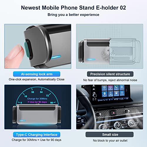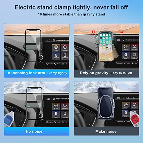 Easy to Use – Our 2023 Integra car screen clip phone mount has an Motor-sensing grab arm, just press the left release button to locking arm, put the smartphone, then the arm will automatically close