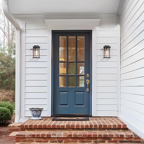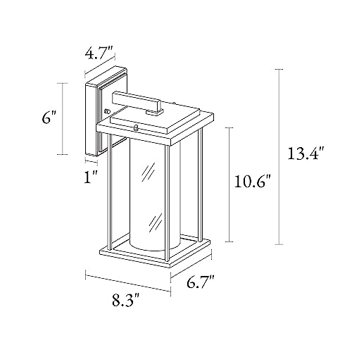 Ideal Size & Suited Sciences: Overall height of the exterior wall lanterns: 13.4”; Width: 6.7”; Extended length from wall: 8.3”; Backplate: 4.7” x 6” x 1”; With the ideal size, the outdoor wall lamps are particularly designed to improve and brighten your front door, entry, porch, patio, corridor, entryway, driveway, and more outside house areas. Also suited to indoor places.