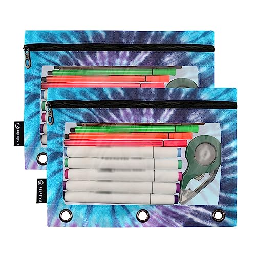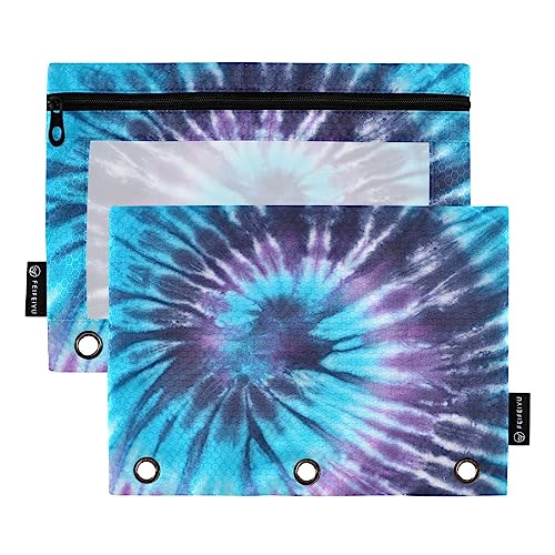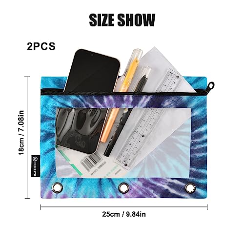 Specification: Blue Purple Tie Dyed Binder Pencil Pouch for 3 Ring Pencil Pouch with Zipper Clear Window Pencil Case Pencil Pouches Bags for Travel Office Supplies, 2 Pack