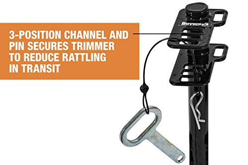 Secure and Sturdy: This trimmer rack has a channel and flat pin design with 3 settings to provide a tight hold and prevent rattle; Made of black powder coated steel to resist rust and stay strong