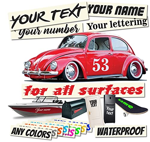 CUSTOMIZE YOUR VINYL STICKER. Size 1×5 inches with 20 color options, a variety of fonts and sizes, you can fully customize your sticker to advertise your message on your car, truck, window, phone case, laptop, or any surface you want to stick it on.