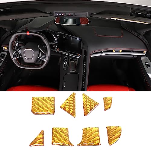 CHEAYAR Soft 3D Real Carbon Fiber Car Air Conditioning Vent Sticker Trim Compatible with Corvette C8 Stingray Z06 Z51 2020 2021 2022 2023 Interior Center Console Kit (Yellow)