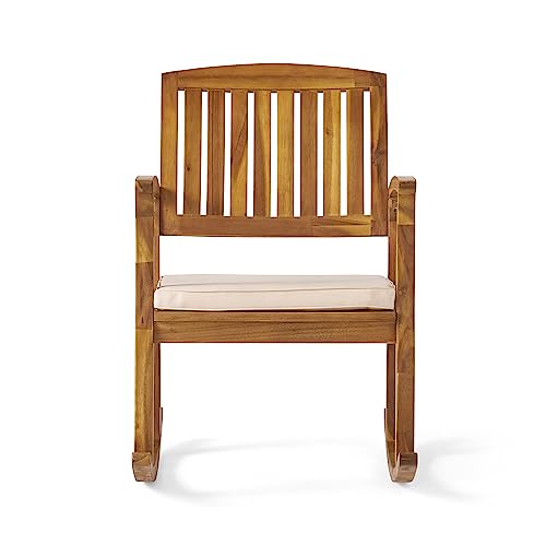 Christopher Knight Home Selma Acacia Rocking Chair with Cushion, Teak Finish