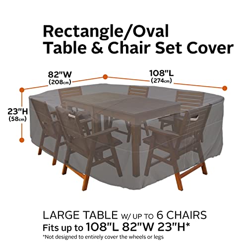 Classic Accessories Ravenna Water-Resistant 108 Inch Rectangular/Oval Patio Table & Chair Set Cover, Large, Taupe, Outdoor Table Cover