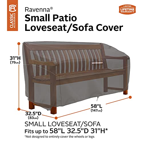 Classic Accessories Ravenna Water-Resistant 58 Inch Patio Sofa/Loveseat Cover,Small, Patio Furniture Covers, Dark Taupe