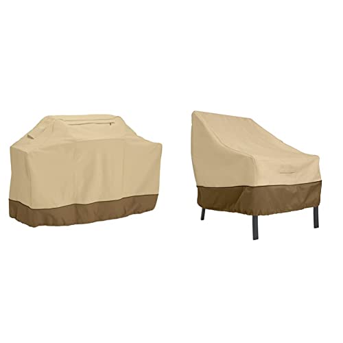 Classic Accessories Veranda Rectangular Water-Resistant 70 Inch BBQ Grill Cover, Pebble, X-Large & Veranda Water-Resistant 38 Inch Patio Lounge Chair Cover, Pebble/Bark//Earth