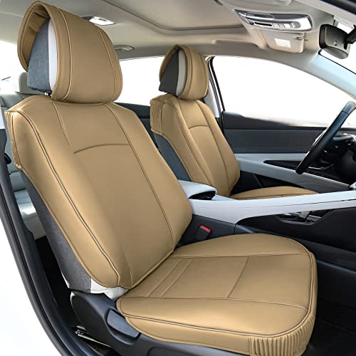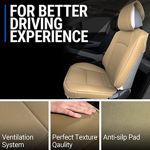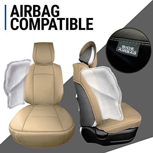 Coverland Astraline Leather Front Car Seat Cover Set | Car Seat Protector fits for Headrest, Backrest & Bottom | Water Resistant Seat Cover with Padding | Beige Seat Covers for Cars SUVs & Trucks