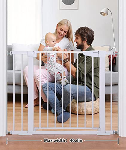 Cumbor 29.5-40.6″ White Baby Gate & Cumbor 0-55″ Wide 41″ Tall White Retractable Baby Gate for Stairs, Wide Safety Gates for Kids or Pets, Child Gate for Doorways, Hallways, Indoor, Outdoor