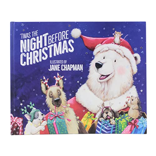 OFFICIALLY LICENSED TALE: Everyone’s favorite holiday bedtime story has been given a super cute new twist! Jane Chapman brings new life to the iconic ‘Twas the Night Before Christmas tale with her adorable illustrations of a polar bear in a Santa costume, flying dogs dressed as reindeer, and jolly woodland critters galore!