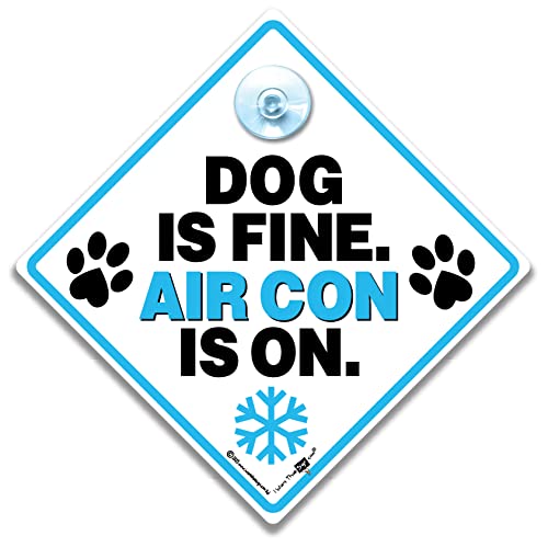 Specification: Dog is Fine Air Con is On Car Sign, Air Conditioning Sign for Dogs in Car, Dog AC Car Sign, Air Conditioning Dog On Board Sign with Suction Cup 14 cm x 14cm x 2cm