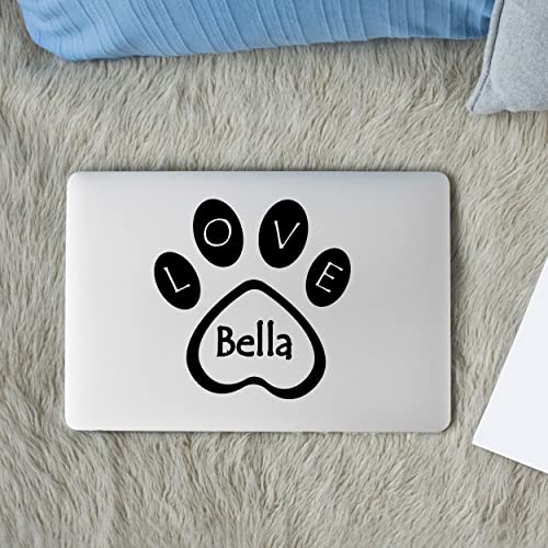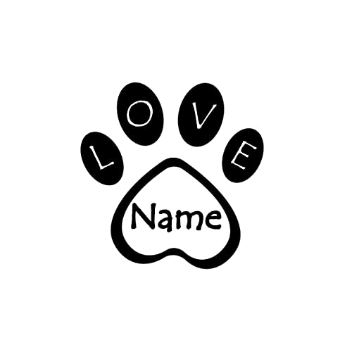 Specification: Dog Paw Decal with Love Sign and Personalized Name – Paw Dog Name and Love Inscription Decal for Car Bumper, Window, Bowl – Puppy Name Sticker Paw Shaped with Love