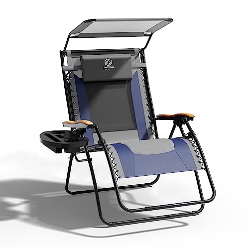 Specification: doubob Zero Gravity Chair Camping Recliner Folding Outdoor Patio Lawn Adjustable Lounge Chair with Canopy Shade, Headrest, Side Drink Tray Dark Blue