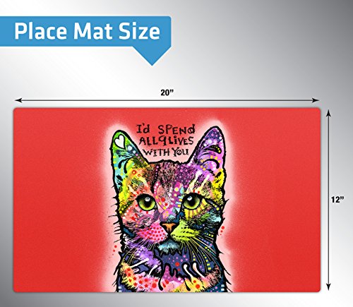 Specification: Drymate Pet Placemat, Dean Russo Designs, Dog Food Mat, Cat Food Mat, Zorb-Tech Anti Flow Technology for Surface Protection (USA Made) (12″ x 20″, 9 Lives)