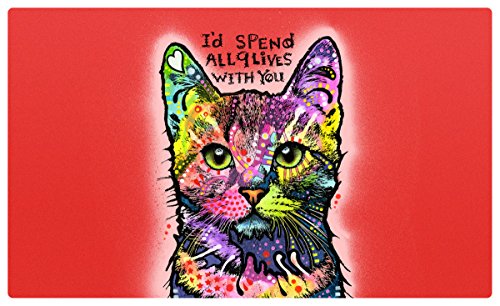 Drymate Pet Placemat, Dean Russo Designs, Dog Food Mat, Cat Food Mat, Zorb-Tech Anti Flow Technology for Surface Protection (USA Made) (12″ x 20″, 9 Lives)