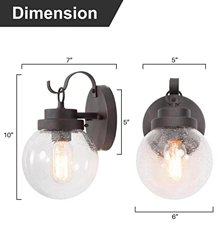 Specification: Durent Lighting Outdoor Wall Lights, Exterior Globe Wall Sconces Light Fixture with Seeded Glass, Waterproof and Anti-Rust Sphere Lanterns for Front Door, Entry, Porch, Patio, and Gazebo