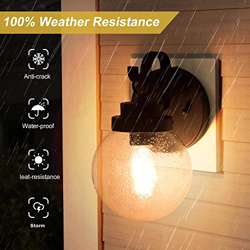Durent Lighting Outdoor Wall Lights, Exterior Globe Wall Sconces Light Fixture with Seeded Glass, Waterproof and Anti-Rust Sphere Lanterns for Front Door, Entry, Porch, Patio, and Gazebo