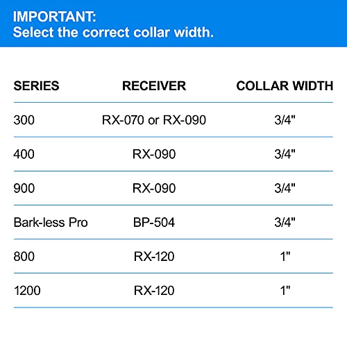 1″ wide collar fits all Educator 800 and 1200 series training collar receivers; all other models require 3/4″ wide collar