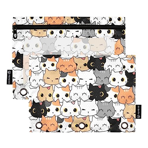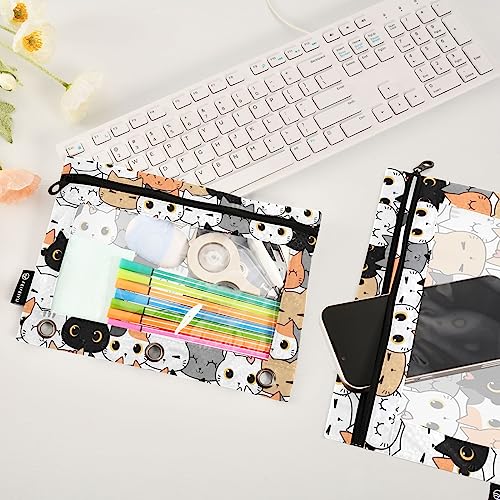 Emelivor Cat Kitten Cartoon Binder Pencil Pouch for 3 Ring Pencil Pouch with Zipper Clear Window Pencil Case Pencil Pouches Bags for Office Supplies Travel Cosmetic, 2 Pack