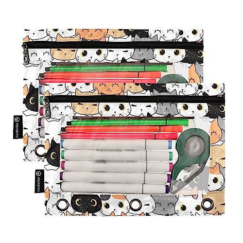 Specification: Emelivor Cat Kitten Cartoon Binder Pencil Pouch for 3 Ring Pencil Pouch with Zipper Clear Window Pencil Case Pencil Pouches Bags for Office Supplies Travel Cosmetic, 2 Pack