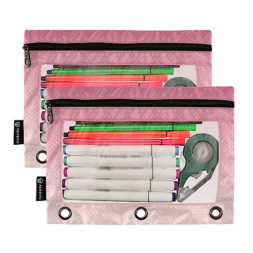 Specification: Pink Gradient Personalized Binder Pencil Pouch for 3 Ring Custom Pencil Pouch with Zipper Clear Window Pencil Case Pencil Pouches Bags for Office Daily Supplies, 2 Pack