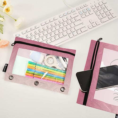Pink Gradient Personalized Binder Pencil Pouch for 3 Ring Custom Pencil Pouch with Zipper Clear Window Pencil Case Pencil Pouches Bags for Office Daily Supplies, 2 Pack