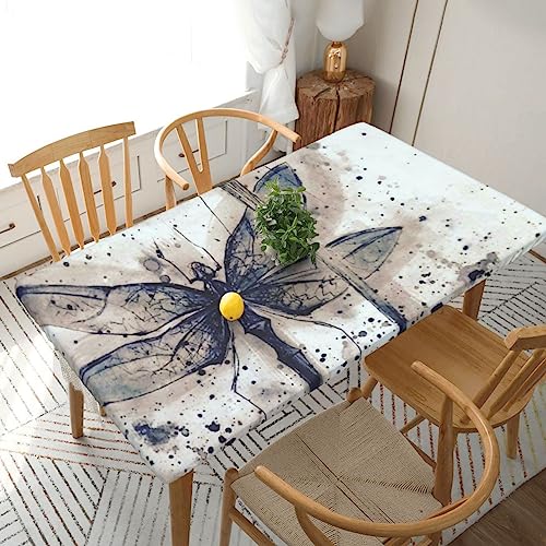 EVANEM Modern Dragonfly Printed Rectangle Tablecloth Elastic Fitted Table Covers Patio Table Cover Table Cloth Cover for Indoor Outdoor Picnic Camping 5 Ft