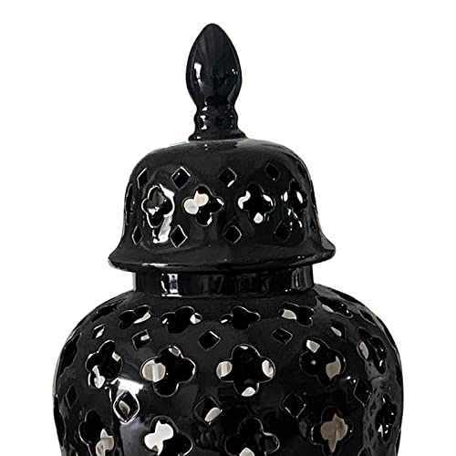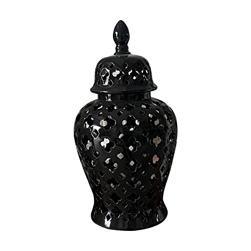 Specification: Ginger Jar Porcelain Ginger Jar Lattice 14″ Modern Pierced Temple Jar Vase Ceramic Vases for Flowers for Home Office Decor Gift Centerpiece, Black