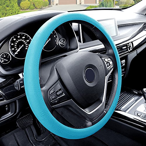 Specification: FH Group Universal Fit Silicone Snake Pattern with Massaging Grip Steering Wheel Cover fits most Cars, SUVs, Trucks, and Vans Light Blue