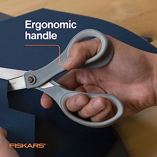 Fiskars Softgrip Contoured Performance Scissors All Purpose – Stainless Steel – 8″ – Fabric Scissors for Office, Arts, Crafts, and Stocking Stuffers – Grey