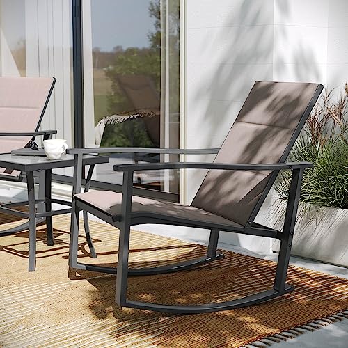 Specification: Flash Furniture FV-FSC-2315-BRN-GG Brazos 3 Piece Outdoor Rocking Chair Bistro Set with Flex Comfort Material and Metal Framed Glass Top Table, Brown/Black