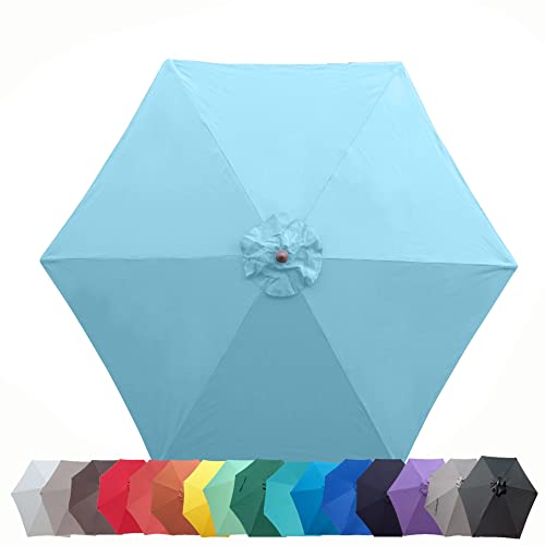 Specification: Formosa Covers 9ft Market Patio Umbrella Canopy – Light Blue, 6 Ribs, 300D UV Protective and Water Resistant, Premium Quality Replacement Canopy
