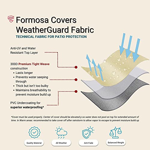 Tired of cleaning off your outdoor furniture set each time you want to use it? Keep your regtangular or oval table and chairs clean and dry all year round with our durable patio furniture covers. With proper use it will prolong the life of your expensive patio furniture investment. Get a Formosa Cover for your backyard furniture so you can start enjoying your outdoor relaxation, dinner, bbq, or party faster.