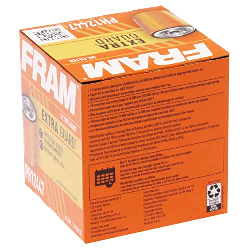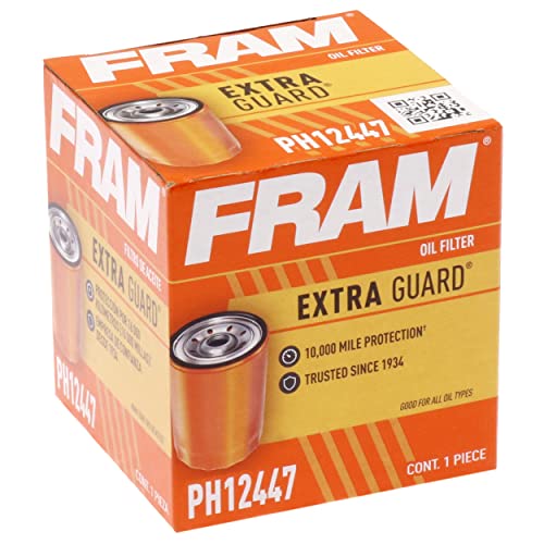 FRAM Extra Guard Spin-On Automotive Replacement Oil Filter, Designed for Conventional and Synthetic Oil Changes Lasting up to 10k Miles, PH12447 with SureGrip (Pack of 1)