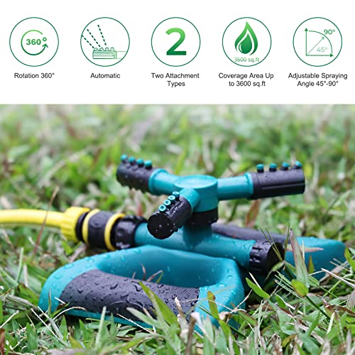 Specification: Garden Sprinkler Water Sprinkler 360 Degrees Adjustable Rotation Lawn Sprinkler Oscillating Water for Yard Large Area Plant Irrigation and Kids Playing (Sea Green)