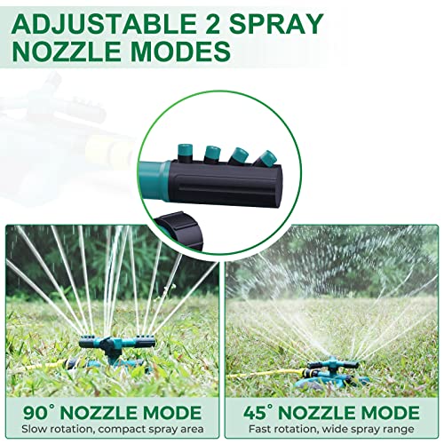 Long Spray Distance & Wide Coverage: Efficiently water your lawn up to 26 – 32.8ft distance with international standard pipes. This lawn sprinkler with three 360-degree rotating arms can cover a large area with a spray distance of up to 32.8ft for maximum water exposure (water pressure 60 PSI).