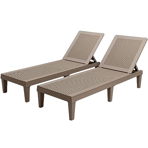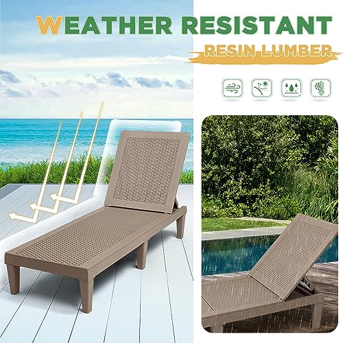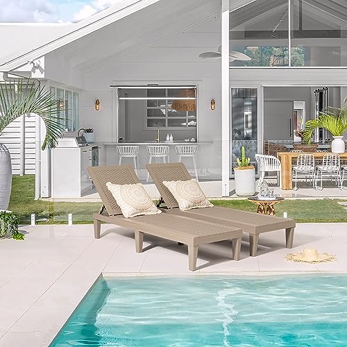 Greesum Outdoor Chaise Lounge Chairs Set of 2 with Adjustable Backrest, Waterproof PE Easy Assembly, Lightweight for Patio, Poolside, Beach, Yard, Light Brown