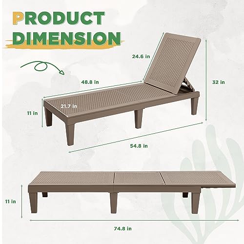 Specification: Greesum Outdoor Chaise Lounge Chairs Set of 2 with Adjustable Backrest, Waterproof PE Easy Assembly, Lightweight for Patio, Poolside, Beach, Yard, Light Brown