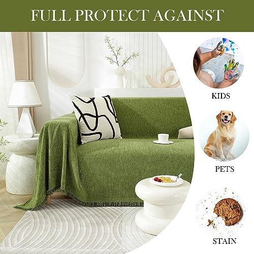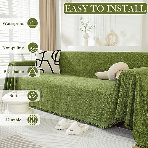 Specification: HANDONTIME Sofa Covers Olive Green 3 Seater Couch Cover Pet Couch Protector Dark Green Anti Slip Sofa Cushion Cover Chenille Sofa Throw Cover 71″ X134″ Loveseat Sectional Couch Covers